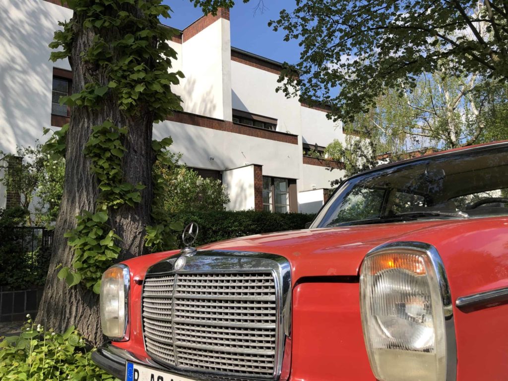Eine kleine, aber bemerkenswerte private Bauausstellung ist hier zu bewundern, beispielhaft für neue Konstruktionsweisen des Neuen Bauens. Die Architekten haben außen und auch in dem Raumprogramm innen neue Wege gefunden. Kubisch gestaffelte Baukörper mit Flachdach, keinerlei Dekor, bis auf ein paar rote Ziegelbänder alles in Weiß gehalten: Ästhetisch ist das Ergebnis sicherlich ein Schock für viele der Villen-Bewohner in Dahlem. Aber das stört die ersten Nutzer der Versuchssiedlung nicht. Und ist es nicht das beste Zeichen, wenn Architekten selbst in die Häuser einziehen, die sie bauen? Dicht beieinander, getrennt nur von dem gemeinsam genutzten und leicht zurückversetzten Atelierhaus, wohnen die Brüder Luckhardt und Alfons Anker.