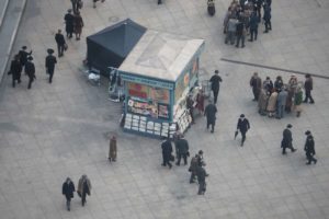 Und dann wirkt auch nicht der alte Zeitungskiosk wie ein Fremdkörper, sondern die Weltzeituhr aus dem Jahr...Durch die Absperrungen kann trotz sehr eifriger Security immer wieder ein Blick auf die Dreharbeiten geworfen werden, nur Fotos sind nicht erwünscht. Vom Hotel Park Inn hatten wir allerdings einen großartigen Blick auf den Platz – hier einige Fotos von den Dreharbeiten. Wir sind schon sehr gespannt auf das Ergebnis - und freuen uns sehr, daß das Team um Tom Tykwer die Aura des historischen Ortes den Studiobedingungen vorgezogen hat.