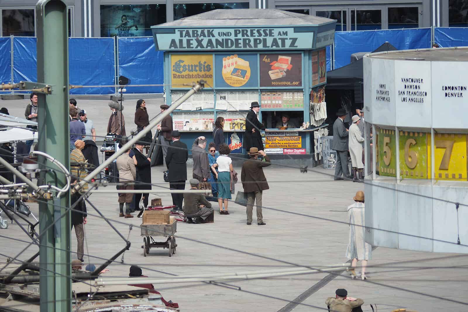 Und Action! Ein Dutzend alter Oldtimer mit dem alten Berliner IA-Kennzeichen fahren los, Proletarier mit Schiebermütze, Schupos mit Tschako, junge Frauen mit Bubikopf sowie orthodoxe Juden schlendern über den Platz, die Straßenbahn 48E mit Ziel Pankow setzt sich in Bewegung. Dreharbeiten im Herzen von Berlin. Bekanntes Bild, aber hier entsteht etwas ganz Besonderes. Nicht im Studio, sondern erstaunlicherweise auf dem Alexanderplatz selbst, diesem vor allem von sozialistischer Architektur geprägten Platz, lässt X-Filme die Zwanziger Jahre wieder auferstehen. Neben den erwähnten Großrequisiten hilft vor allem ein Gebäude: Das Alexanderhaus von Peter Behrens, gebaut...