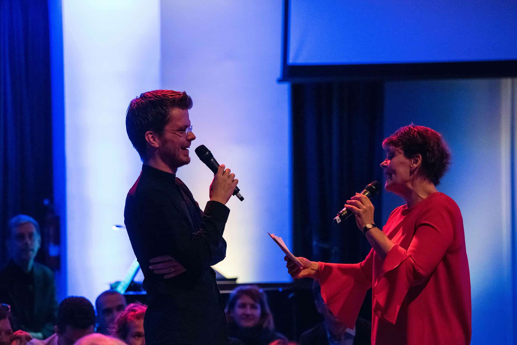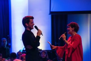 Aber dann springen wir in die Zwanziger Jahre, mit Kurt Weill, Friedrich Hollaender und den Comedian Harmonists. Und hier kommt Zeitreisen ins Spiel. Arne Krasting ist eingeladen, als Experte der Weimarer Republik im Gespräch mit Gayle Tufts, der Moderatorin des Abends, zu Schlüsselthemen der Zeit Stellung zu beziehen. Natürlich ist der Aufhänger „Babylon Berlin“ und die Frage, warum diese Zeit so sehr fasziniert. Das Sehnsuchtsjahrzehnt der Deutschen wird immer wieder für Projektionen genutzt und als „goldene Zeit“ verklärt. Aber nicht für Jeden waren diese Jahre golden, wie auch in einigen sozialkritischen Liedern anklingt.