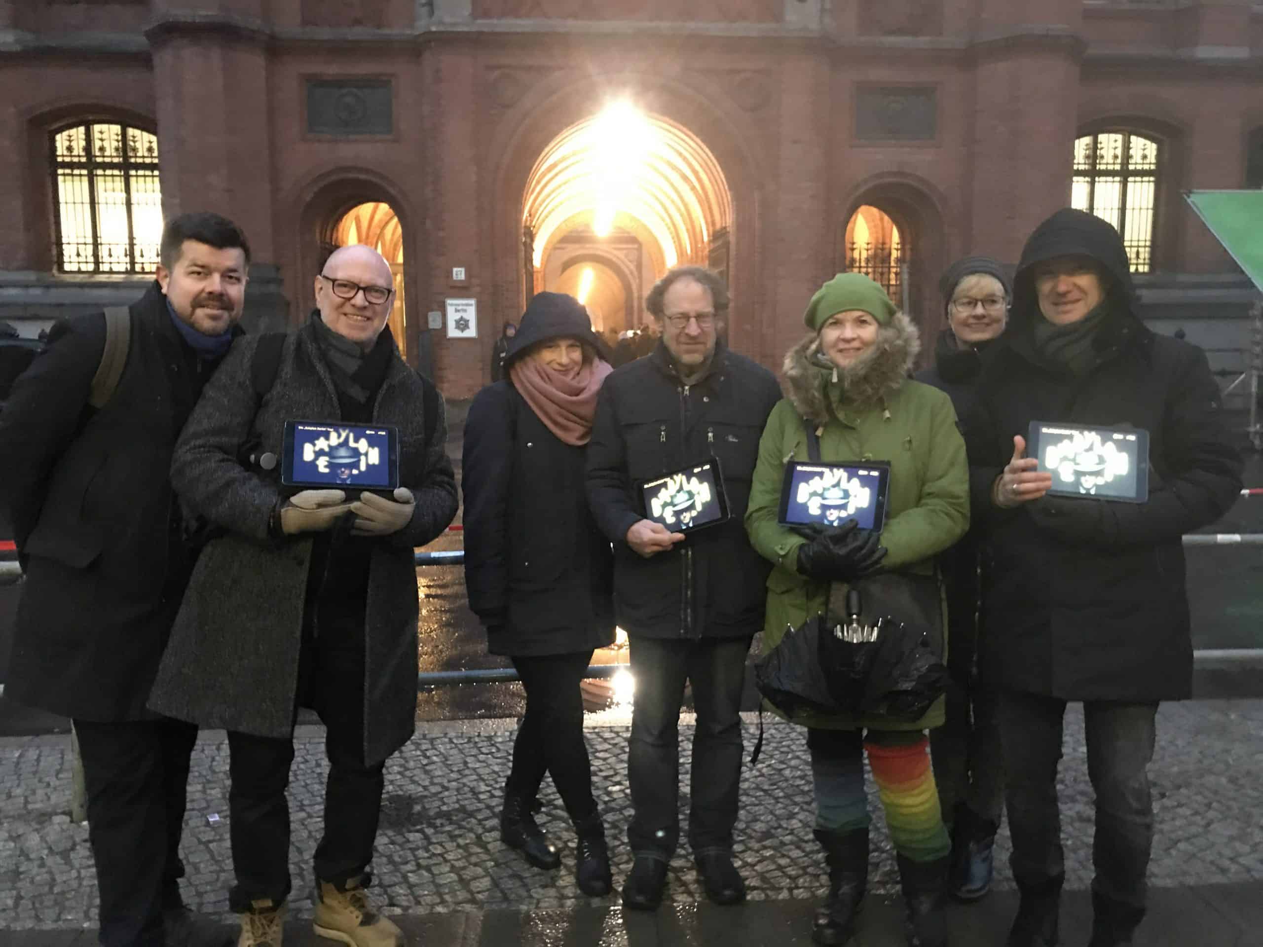 Ein glücklicher Zufall, denn es ist Samstag und wir sind gerade mit den Gästen unserer Babylon Berlin-Tour unterwegs. Auf unserer Strecke vorbei an Drehorten der ersten beiden Staffeln stolpern wir in die Sets der dritten Staffel. Stadthaus und Jüdenstraße die eine Woche, Rotes Rathaus die andere Woche. Das Rote Rathaus ist wieder Double für die „Rote Burg“. Das Schild „Senatskanzlei“ an dem Seiteneingang ist ausgetauscht: jetzt steht hier „Polizeipräsidium...“. Einige alte Autos stehen vor dem Eingang, aber die Dreharbeiten finden in den Innenhöfen statt – und sind auch schon vorbei, als wir am Drehort eintreffen. Aber welche Rolle wohl das Stadthaus spielen wird? Innen drin lockt mit dem Bärensaal einer der schönsten großen Festsäle der Stadt. Optimal geeignet für...warten wir es ab! Am nächsten Tag ist nichts mehr von der Zeitreise zu spüren. Die Flitterwochen sind schon seit 90 Jahren aus den Kinos und wir hoffen, daß dieser Film aus dem Vergessen gezogen wird.