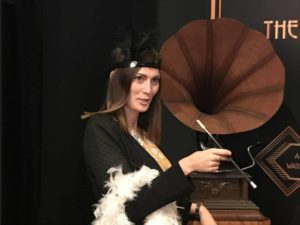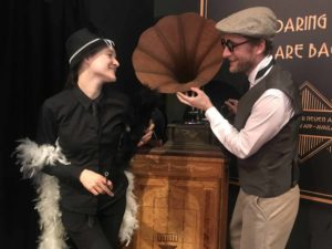 Wir waren mittendrin mit unseren tollen Flyer von Daniel Schöps (www.strukturat.design). Schrifttyp und Farbe passten wunderbar zu der Gestaltung des Standes. Und mit unseren 20er-Jahren Accessoires stellten wir dann auch noch das passende Personal. Eine kleine Spritztour im Oldtimer? Ein Charleston von dem Grammophon? Ein Abstecher in die Mokka-Effti-Bar? Kein Problem.